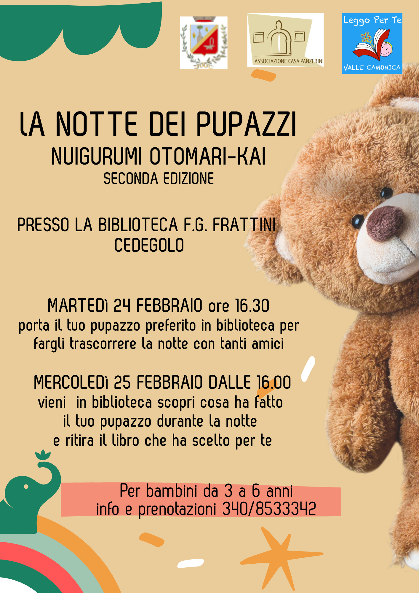 vieni in biblioteca scopri cosa ha fatto il tuo pupazzo durente la notte e ritira il libro che ha scelto per te